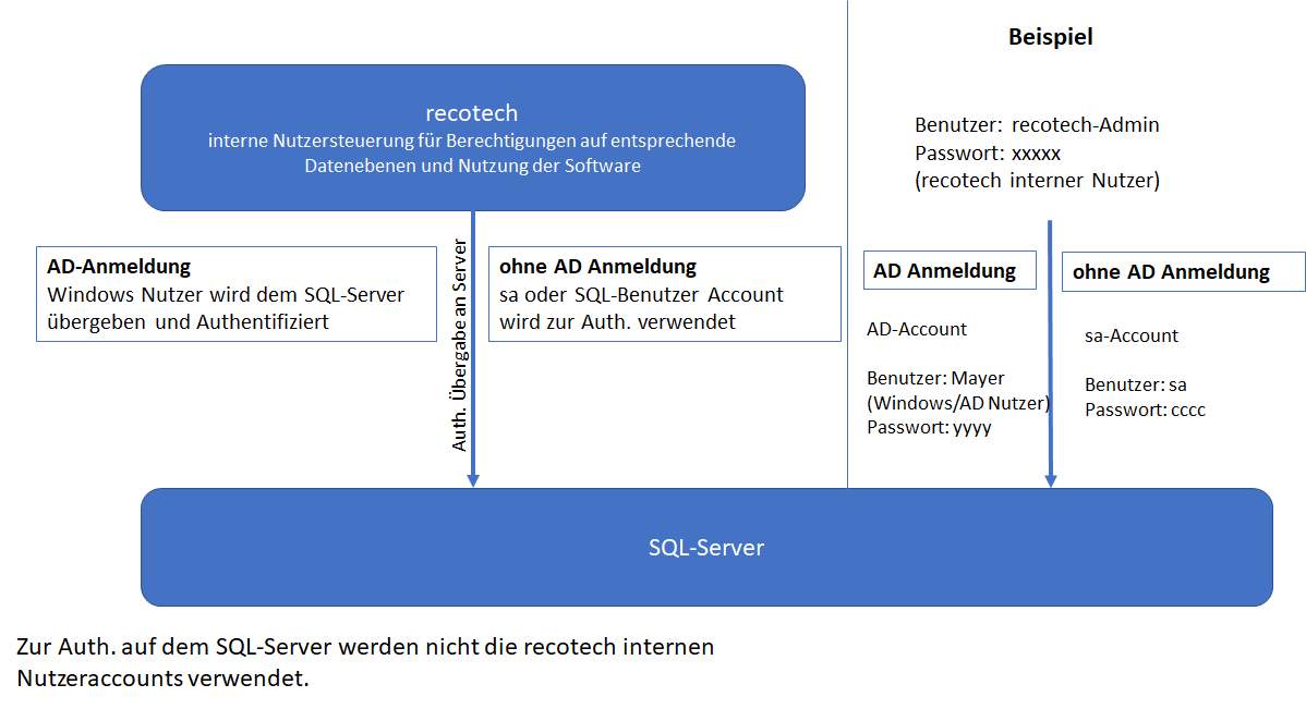Diese Auth. berechtigt den Nutzer auf die Datenbank bzw. den Datenbankserver zuzugreifen. Die eigentliche Nutzerverwaltung wird in recotech (intern) durchgeführt, da weitere Berechtigungskonzepte angewendet werden auf Stammdaten und Projektebene.