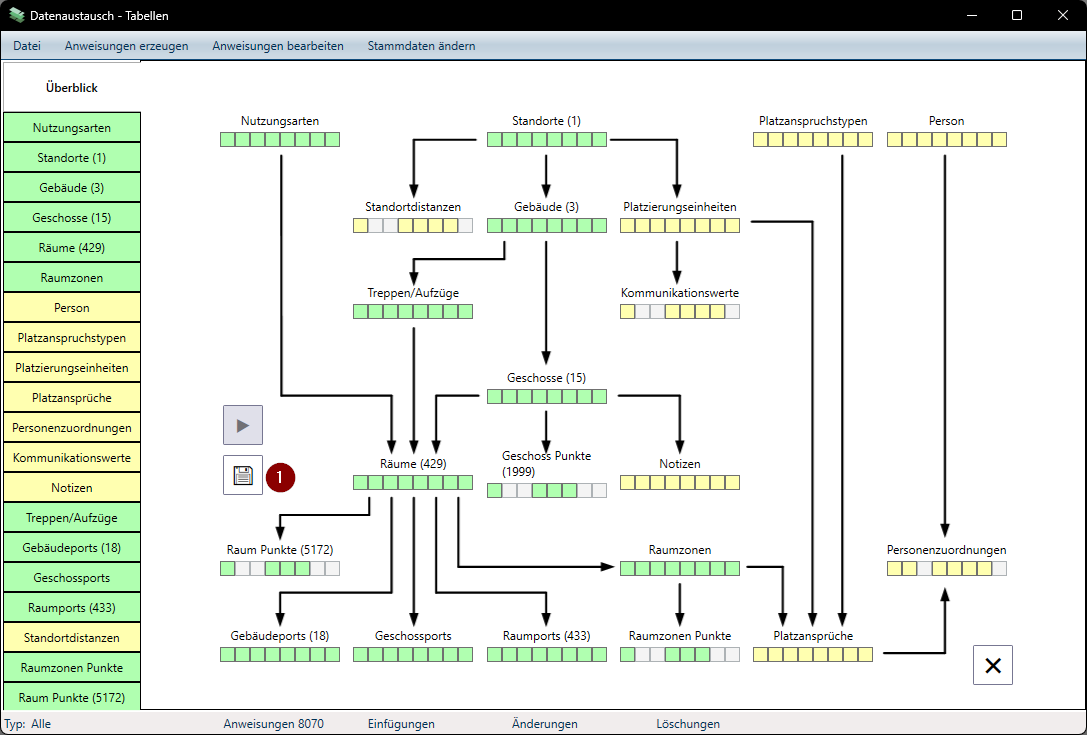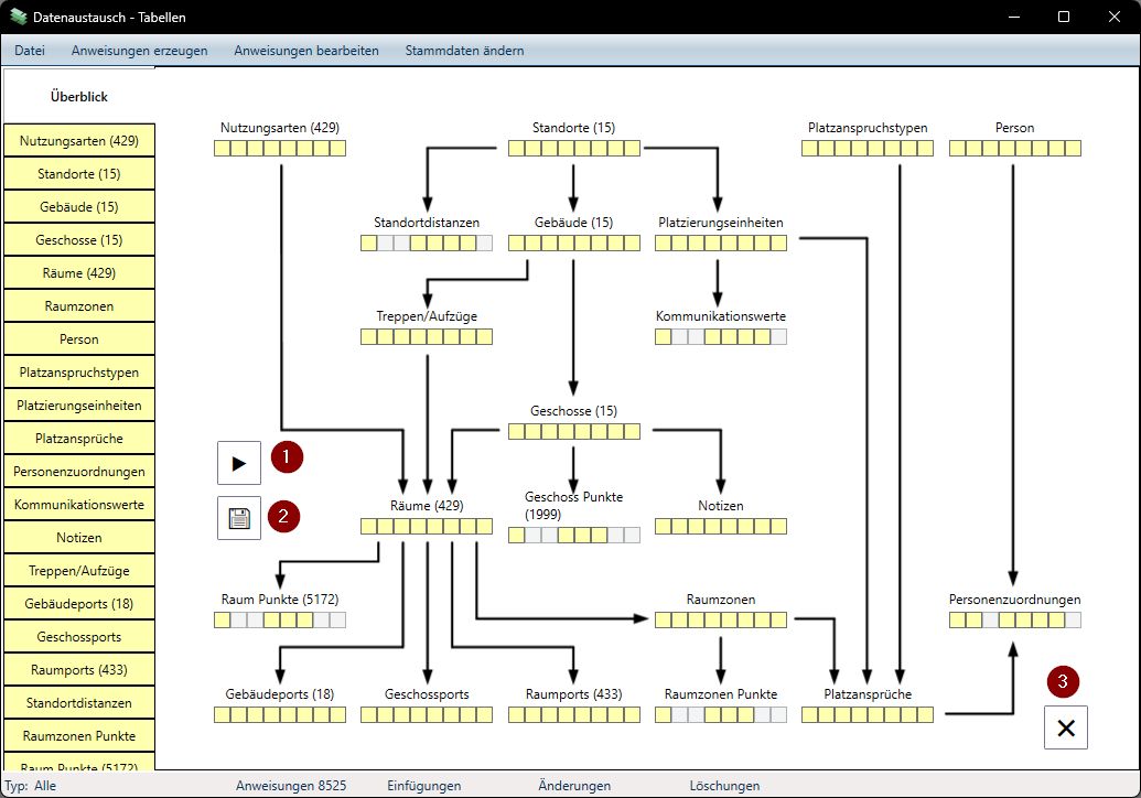 - Sollte die Daten nicht korrekt sein (Fehler in der Geometrie, Belegungszuordnung, …) können die Stammdaten geschlossen werden, ohne zu speichern. Damit werden die Stammdaten in den vorigen Zustand zurückgesetzt und der Import verworfen.