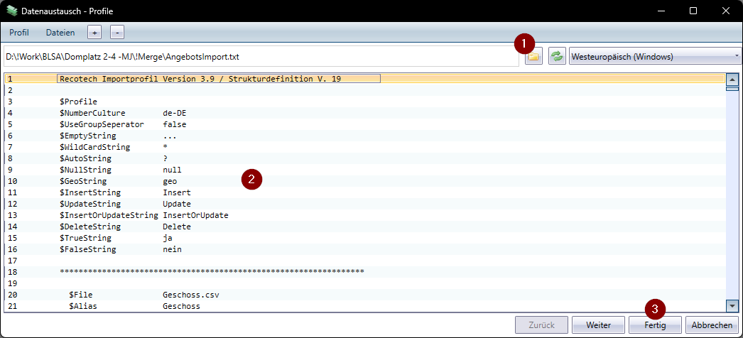 Daten importieren mittels Profildateien