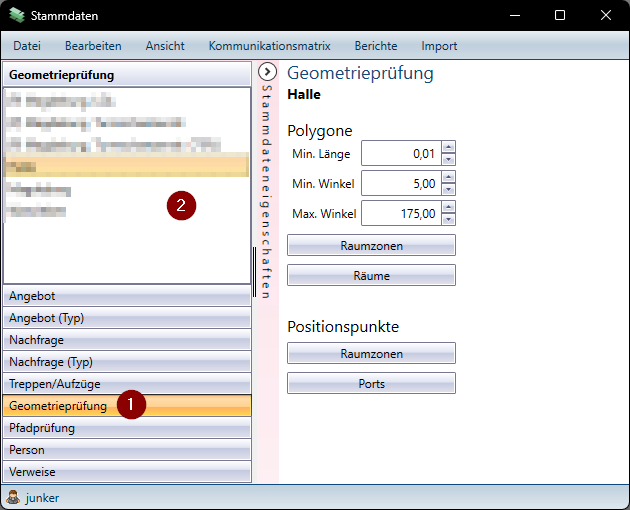 Die Geometrieprüfung erfolgt auf jedem Standort explizit und ist in den Stammdaten zu finden.