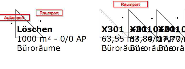 Nun die Grafik aufrufen und die problematischen Geschosse durchgehen und Türen setzen. Jeweils eine Raumport zwischen den Dreiecken und am ersten Dreieck noch eine Außentür auf allen Geschossen